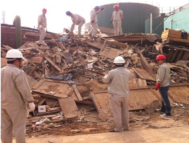 烈日炎炎,在公司總經(jīng)理喬樹華號(hào)召下,由健康安全環(huán)保部經(jīng)理孫長(zhǎng)輝現(xiàn)場(chǎng)指揮,大家自行結(jié)隊(duì),不畏辛苦,拆卸木箱、搬運(yùn)木板、揀拾垃圾,將廢棄物重新規(guī)整,并對(duì)其進(jìn)行分類,對(duì)能重新再利用的進(jìn)行扎堆存放,對(duì)該遺棄的做集體堆放運(yùn)出廠區(qū)。