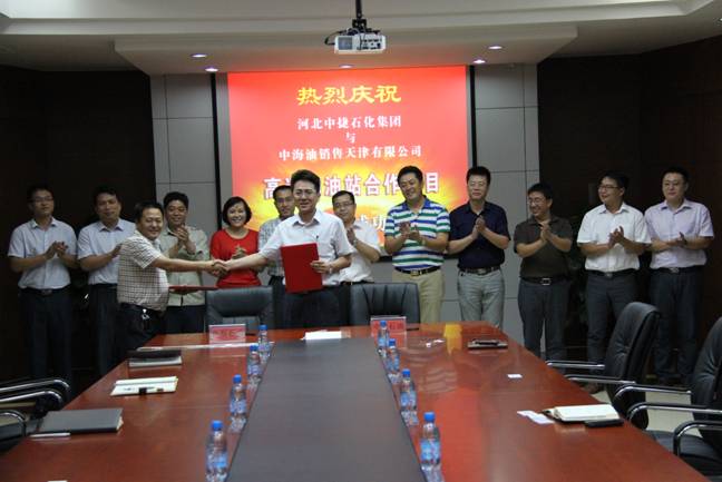 8月29日下午,在新啟元科研樓三樓會議室,河北中捷石化集團與中海油銷售天津公司舉行高層洽談會暨沿海高速服務區(qū)加油站合作項目簽字儀式。會議由中捷石化集團監(jiān)事會主席伊國東主持,中捷石化集團常務副總經理劉國新、中海油銷售天津公司總經理馬國東出席并作講話。華辰石油公司總經理馬強與中海油銷售天津公司副總經理孫昊分別代表雙方在合作協(xié)議上簽字。