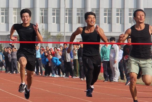 新啟元公司張偉(中)在百米田徑比賽中