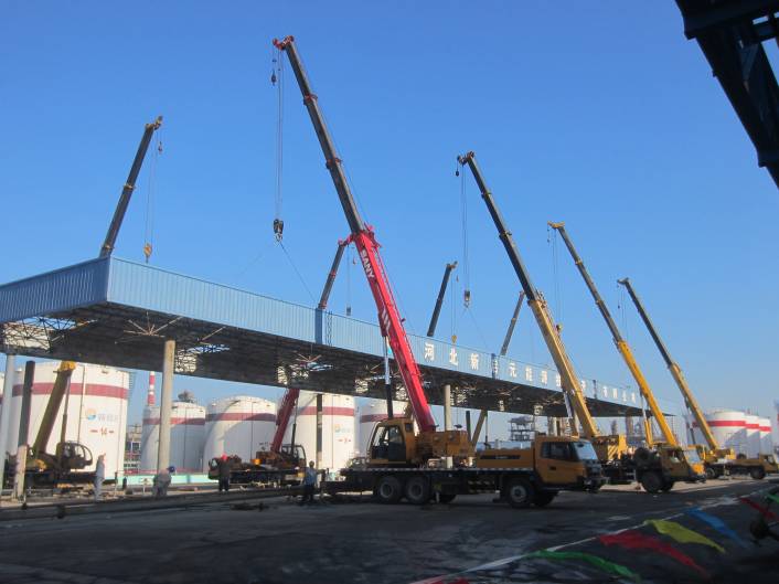 吊裝作業(yè)現(xiàn)場 破道碎石為儲罐打地基