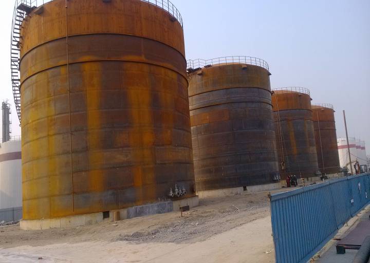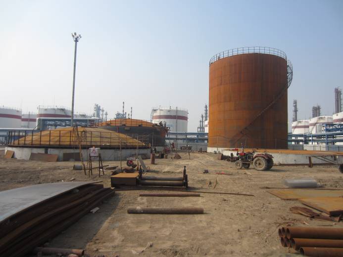 新建儲罐正在施工過程中 儲罐罐體已完工