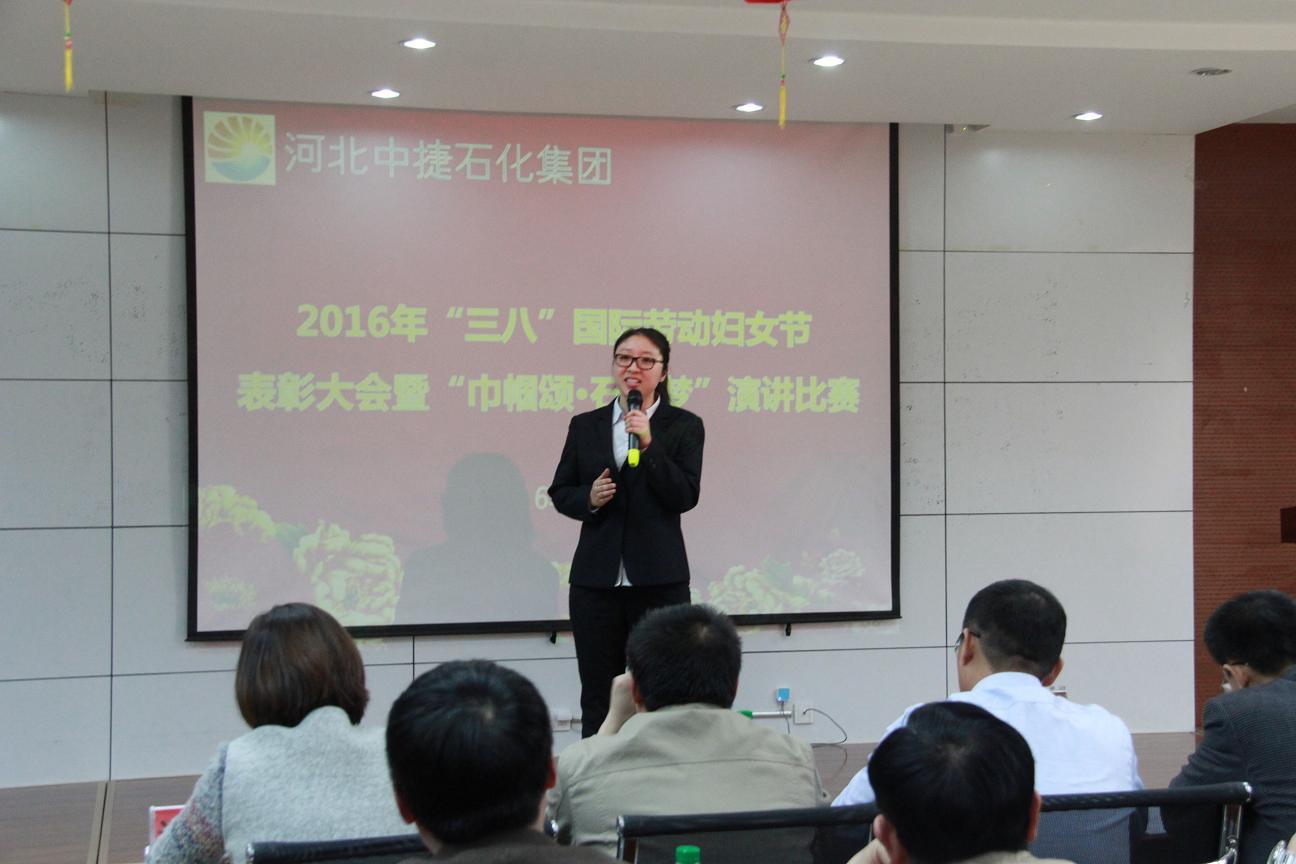 3月8日,是國際勞動婦女節(jié),為了讓公司的女工度過一個輕松快樂的“三?八”婦女節(jié),同時表彰先進女工,河北中捷石化集團2016年“三八”婦女節(jié)表彰大會暨“巾幗頌?石化夢”演講比賽于3月8日下午隆重舉行,集團公司及各所屬單位領(lǐng)導、嘉賓評委、員工代表共計70余人參加了此次會議。