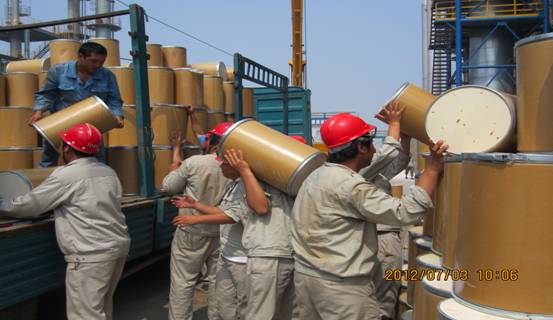員工們正在積極搬卸催化劑