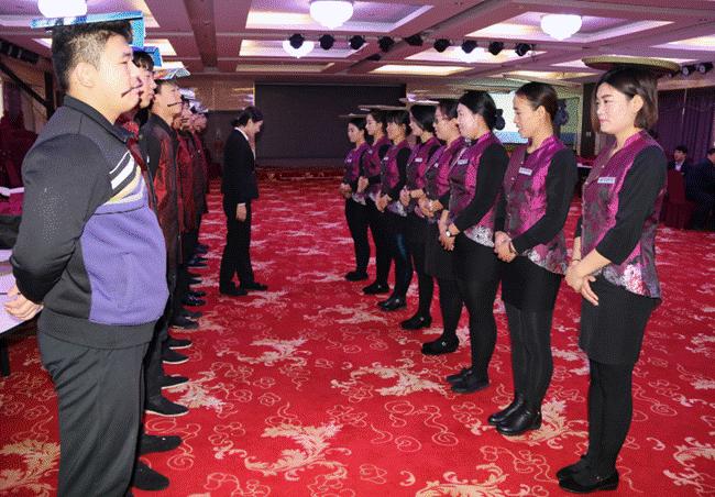 餐飲服務(wù)業(yè)是社會文明的窗口,餐飲業(yè)的服務(wù)質(zhì)量是酒店日常管理的中心工作。全體員工都要有質(zhì)量意識,管理人員更要樹立服務(wù)質(zhì)量觀念。黃驊華悅凱旋大酒店為了提檔升級,打造精品,以提升服務(wù)質(zhì)量為著點(diǎn),將酒店培訓(xùn)工作做扎實(shí)、做到實(shí)處,近日組織開展了一系列培訓(xùn)工作: