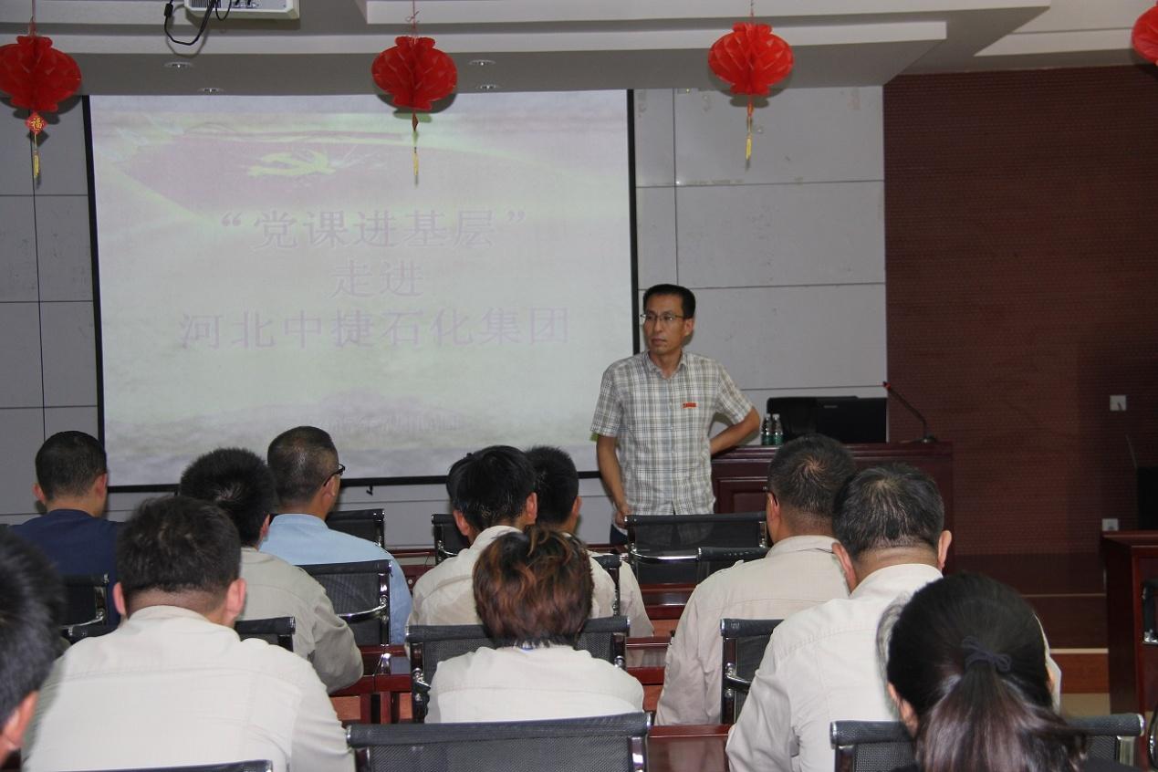 為紀(jì)念中國(guó)共產(chǎn)黨建黨96周年,深入推進(jìn) “兩學(xué)一做”學(xué)習(xí)教育活動(dòng),7月14日,中捷產(chǎn)業(yè)園區(qū)組織部與教育黨工委聯(lián)合組織的“黨課進(jìn)基層”活動(dòng)走進(jìn)中捷石化集團(tuán),集團(tuán)各黨支部黨員代表共70人參加此次活動(dòng),集團(tuán)黨委書記劉國(guó)新出席并主持講話。