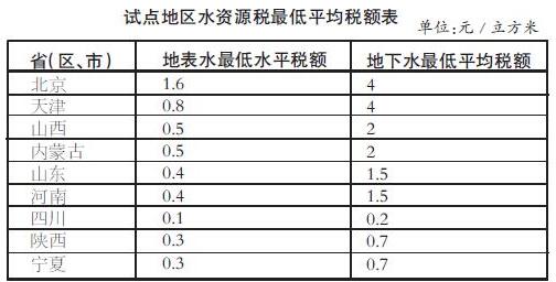 此次試點最低平均稅額為:地表水每立方米0.1-1.6元、地下水每立方米0.2-4元。按不同取用水性質實行差別稅額:對地下水超采地區(qū)取用地下水加征1-4倍;對超計劃或超定額用水加征1-3倍;對特種行業(yè)從高征稅;對超過規(guī)定限額的農(nóng)業(yè)生產(chǎn)取用水、農(nóng)村生活集中式飲水工程取用水等從低征稅。試點方案還明確了規(guī)定限額內(nèi)的農(nóng)業(yè)生產(chǎn)取用水、取用污水處理再生水、采油排水分離凈化后回注等6種減免稅情形。