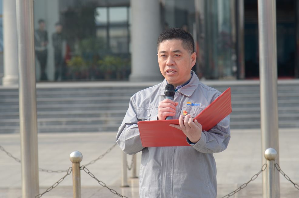 升旗儀式結(jié)束后,新啟元公司總經(jīng)理喬樹華受集團(tuán)委托在國(guó)旗下講話,他指出:中捷石化集團(tuán)全體伙伴要高舉習(xí)近平新時(shí)代中國(guó)特色社會(huì)主義思想偉大旗幟,緊抓機(jī)遇,改革創(chuàng)新,以赤誠(chéng)之心,為實(shí)現(xiàn)兩個(gè)一百年偉大目標(biāo)而砥礪奮進(jìn)。同時(shí),五星紅旗在天安門國(guó)旗班前輩的指引下,高高飄揚(yáng)在祖國(guó)懷抱里的中捷石化土地上,我們千余名伙伴要時(shí)刻銘記集團(tuán)董事長(zhǎng)的教導(dǎo),堅(jiān)定信仰,傳承石化精神,以實(shí)現(xiàn)中捷石化夢(mèng)為己任,勇往直前,譜寫中捷石化新時(shí)代新篇章,為實(shí)現(xiàn)偉大中國(guó)夢(mèng)而努力奮斗!