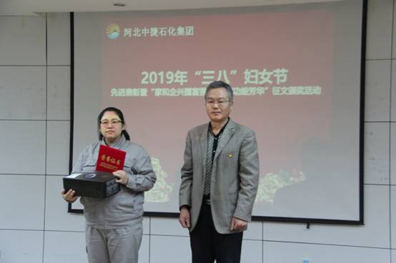 3月8日上午,河北中捷石化集團在科研樓六樓會議室組織舉辦了2019年“三八”婦女節(jié)先進表彰暨“家和企興國富強?巾幗建功綻芳華”征文頒獎活動。集團公司黨政領(lǐng)導(dǎo),各單位黨(總)支部領(lǐng)導(dǎo)、先進女職工、征文獲獎?wù)呒芭ご淼?0余人參加活動。中捷產(chǎn)業(yè)園區(qū)宣傳部劉金林部長出席了本次活動。