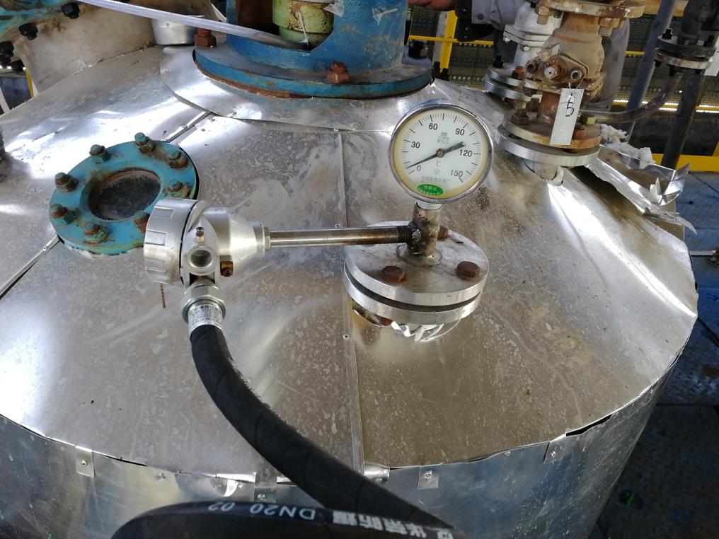 這幾天,新啟元運行七部儀表正常班班長王孝龍“偷偷”打起了溫度計的主意。在塔罐林立的裝置現(xiàn)場,三個反應釜上用來測量罐內(nèi)溫度的雙金屬溫度計引起了王孝龍的注意,由于設備原裝的溫度計沒有數(shù)據(jù)遠傳功能,要想掌握罐內(nèi)溫度,只能爬到二層平臺上現(xiàn)場查看儀表數(shù)據(jù),不便于裝置操作。為了提高日常裝置操作的工作效率,王孝龍決定要進行一次創(chuàng)新改造。