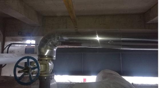 新欣園150噸鍋爐裝置設(shè)有一臺低壓除氧器,目的是通過低壓蒸汽加熱鍋爐給水,在一定壓力下達(dá)到水的飽和溫度點(diǎn),析出水中的溶解氧,從而避免鍋爐承壓部件避免氧腐蝕。低壓除氧器原加熱蒸汽是通過工業(yè)汽輪機(jī)背壓后,產(chǎn)生0.1MPa的蒸汽作為熱源,工業(yè)汽輪機(jī)設(shè)計(jì)是汽輪機(jī)、電動機(jī)、給水泵的三機(jī)組,通過工業(yè)汽輪機(jī)做功,減少電動機(jī)的功率,拖動高壓給水泵,節(jié)約部分電耗。鍋爐的燃?xì)飧脑?,蒸汽成本直線上升,三機(jī)組的運(yùn)行已經(jīng)不能起到節(jié)能的作用。