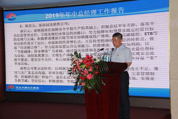 7月16日上午9:30,河北中捷石化集團(tuán)在華悅凱旋大酒店4樓宴廳隆重召開建廠44周年暨2019年上半年工作會(huì)議,集團(tuán)公司董事長(zhǎng)王振華、總經(jīng)理喬樹華等集團(tuán)領(lǐng)導(dǎo)及各級(jí)管理人員共計(jì)74人參加會(huì)議,整個(gè)大廳座無虛席。大會(huì)由集團(tuán)公司黨委書記于國(guó)臣同志主持。