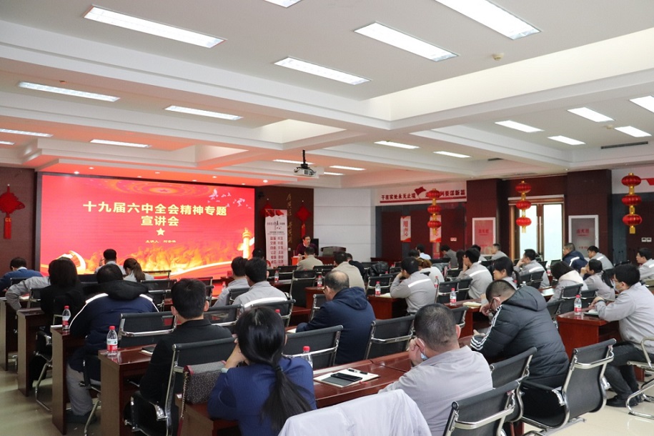 集團(tuán)公司訊 12月10日上午,河北中捷石化集團(tuán)黨委在科研樓六樓會(huì)議室組織舉辦了黨的十九屆六中全會(huì)精神專題宣講會(huì),集團(tuán)黨委書記于國(guó)臣,黨委副書記、紀(jì)委書記朱振江等集團(tuán)領(lǐng)導(dǎo),各黨(總)支部書記、黨員代表共計(jì)40余人參加。宣講會(huì)特邀中捷產(chǎn)業(yè)園區(qū)宣傳部副部長(zhǎng)劉金林主講。