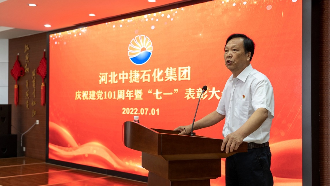 集團公司訊 為隆重紀(jì)念中國共產(chǎn)黨成立101周年,繼續(xù)深入開展黨史學(xué)習(xí)教育,進(jìn)一步激發(fā)基層黨組織戰(zhàn)斗堡壘作用和黨員先鋒模范作用,同時為選優(yōu)樹先、弘揚正氣,不斷增強基層黨組織和廣大黨員干部職工的凝聚力、號召力和戰(zhàn)斗力,7月1日,河北中捷石化集團黨委組織召開慶祝建黨101周年暨“七一”表彰大會。原中捷企業(yè)黨工委書記沈?qū)W明同志,集團黨委書記于國臣同志,集團黨委副書記、總經(jīng)理喬樹華同志,集團黨委副書記、紀(jì)委書記朱振江同志以及各所屬黨(總)支部書記,各支部黨員代表參加了此次活動。