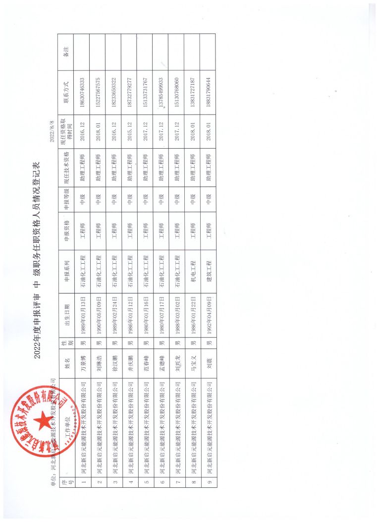 2022年河北新啟元申報(bào)中級(jí)職稱人員信息公示