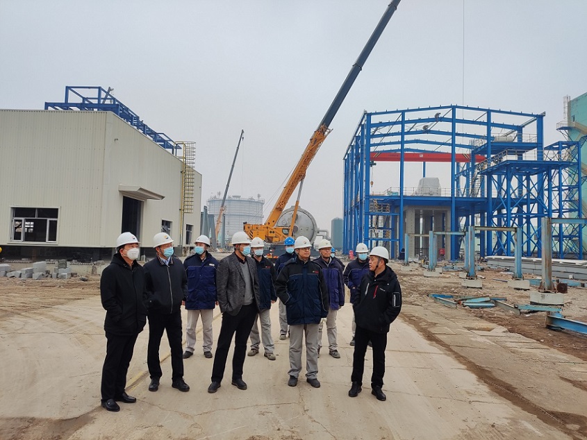 新欣園叔丁醇項(xiàng)目目前已建設(shè)完成,進(jìn)入試生產(chǎn)階段,在項(xiàng)目現(xiàn)場(chǎng),集團(tuán)領(lǐng)導(dǎo)要求項(xiàng)目單位抓緊完善后續(xù)收尾工作,把握市場(chǎng)機(jī)遇進(jìn)行投產(chǎn),并對(duì)新建罐區(qū)綜合高效利用,實(shí)現(xiàn)增益創(chuàng)效。