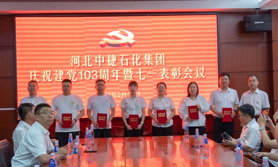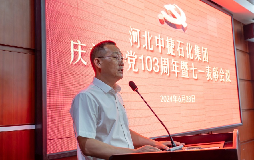 集團(tuán)公司訊 為隆重慶祝中國共產(chǎn)黨成立103周年,牢記革命歷史,緬懷老一輩無產(chǎn)階級革命家,提升黨組織的凝聚力、號召力和戰(zhàn)斗力,增強(qiáng)廣大黨員的光榮感、責(zé)任感和使命感,同時(shí)在表彰先進(jìn)中樹立典型,進(jìn)一步激勵(lì)基層黨組織和黨員充分發(fā)揮戰(zhàn)斗堡壘作用和先鋒模范作用,在中捷石化各項(xiàng)事業(yè)進(jìn)程中不斷貢獻(xiàn)新的更大力量,6月28日上午,河北中捷石化集團(tuán)黨委組織召開了慶“七一”建黨節(jié)活動(dòng)。集團(tuán)黨委書記于國臣同志,集團(tuán)黨委副書記、紀(jì)委書記朱振江同志,以及各所屬黨支部書記,2023—2024年度優(yōu)秀共產(chǎn)黨員、優(yōu)秀黨務(wù)工作者、先進(jìn)基層黨組織代表,黨務(wù)、工會(huì)工作者共計(jì)30余人參加了此次活動(dòng)。