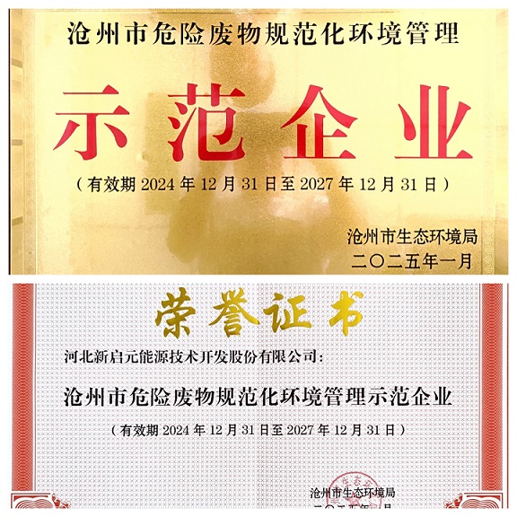 新啟元公司一直重視環(huán)境保護(hù)工作,在中捷產(chǎn)業(yè)園區(qū)作為行業(yè)標(biāo)桿被表?yè)P(yáng)和推廣,曾組織園區(qū)涉危險(xiǎn)廢物企業(yè)負(fù)責(zé)人來(lái)我廠觀摩參觀。2024年滄州市生態(tài)環(huán)境局組織對(duì)全市涉危險(xiǎn)廢物企業(yè)的評(píng)估評(píng)審,歷經(jīng)幾輪檢查,我公司一直名列前茅,最終被滄州市生態(tài)環(huán)境局評(píng)為“滄州市危險(xiǎn)廢物規(guī)范化環(huán)境管理示范企業(yè)”。
