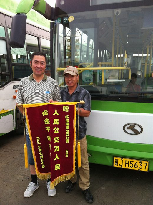 李先生當(dāng)時(shí)就很激動(dòng),立即拿出錢(qián)來(lái)感謝駕駛員王振波,王師傅說(shuō)啥也不收,他說(shuō)這是公交駕駛員起碼的職業(yè)道德。在8月5日早上,李先生又特地來(lái)到公司,將一面印有“人民公交為人民,拾金不昧百姓夸”的錦旗送到駕駛員王振波師傅的手里。